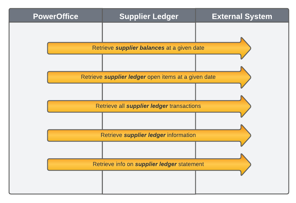 These endpoints are typically used in cases for detailed accounting reporting and detailed reporting of payment transactions. The supplier ledger provide a specification of the transaction entries posted in the supplier ledger. This includes general invoice information, payments and other transactions, and the match state* of transactions.